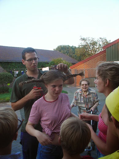Naast het boerenleven, zijn we ook actief als zorgboerderij, een initiatief van Groene Zorg. Een zorgboerderij is een land- of tuinbouwbedrijf waar mensen uit kwetsbare groepen opgevangen worden. Die opvang bestaat erin dat zij meedoen met de gewone activiteiten op het bedrijf.